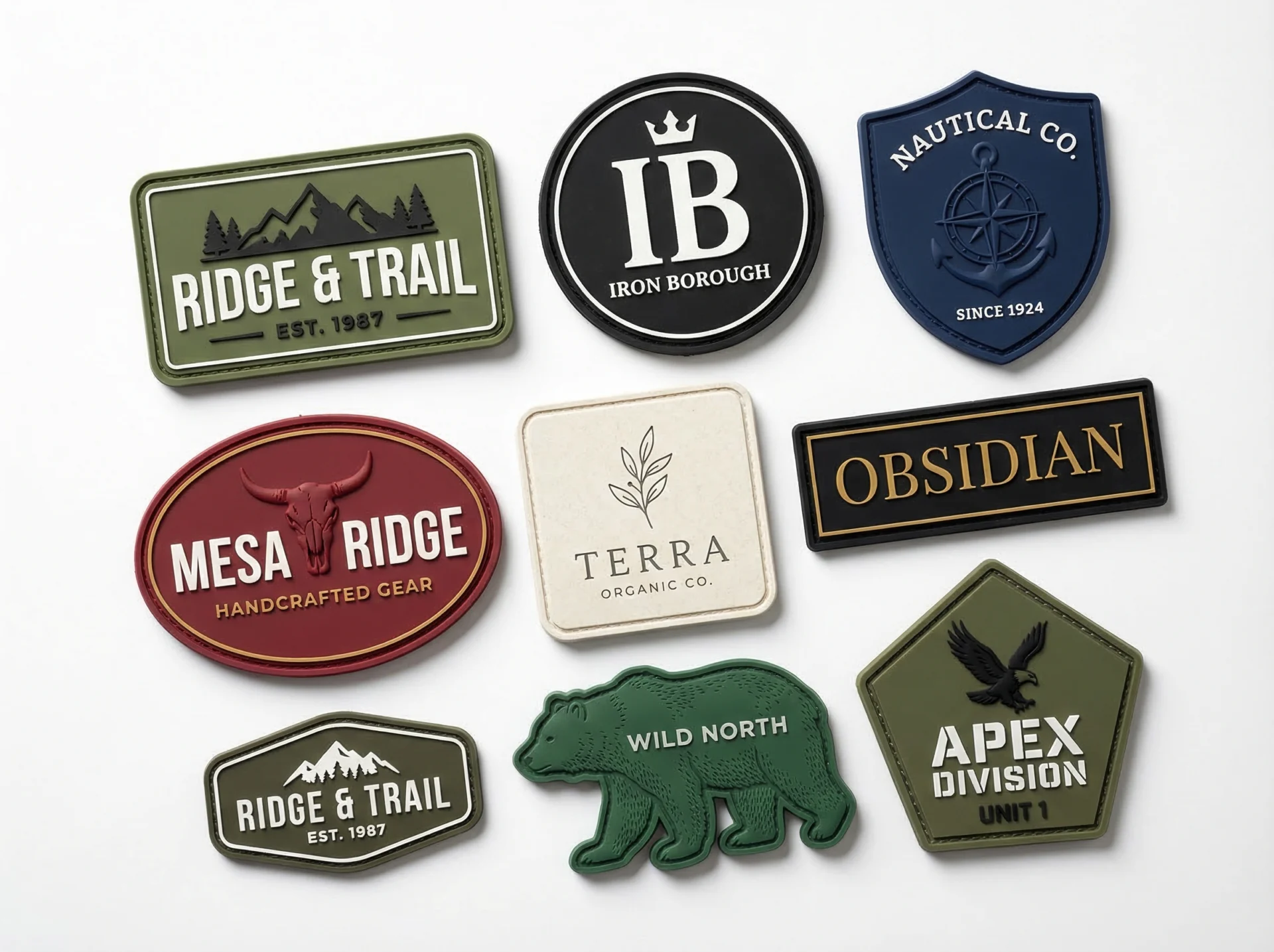 Fully customizable in any shape, size, and color. Sew them on, stick them on, or Velcro them — your logo, wherever it needs to go.