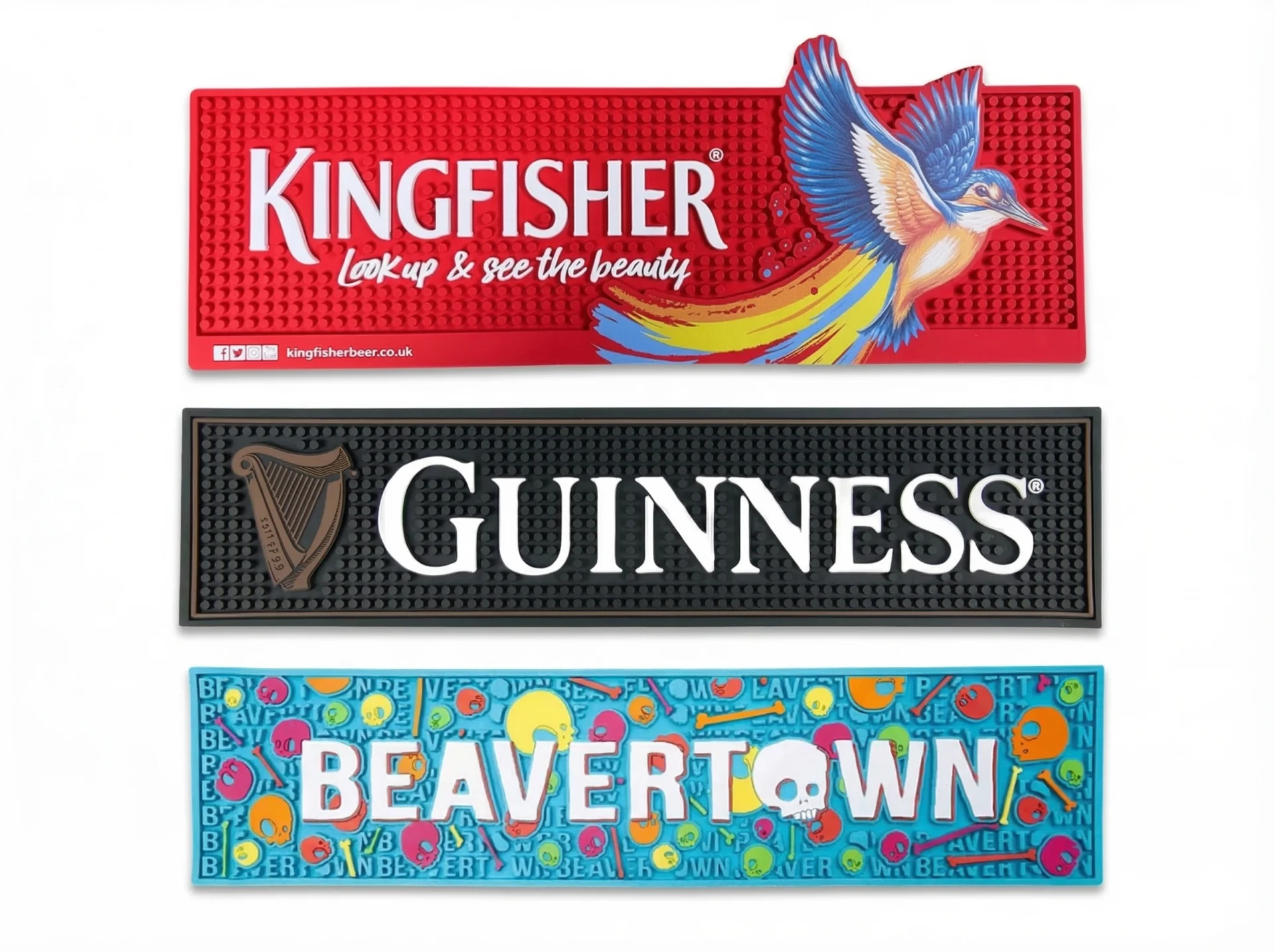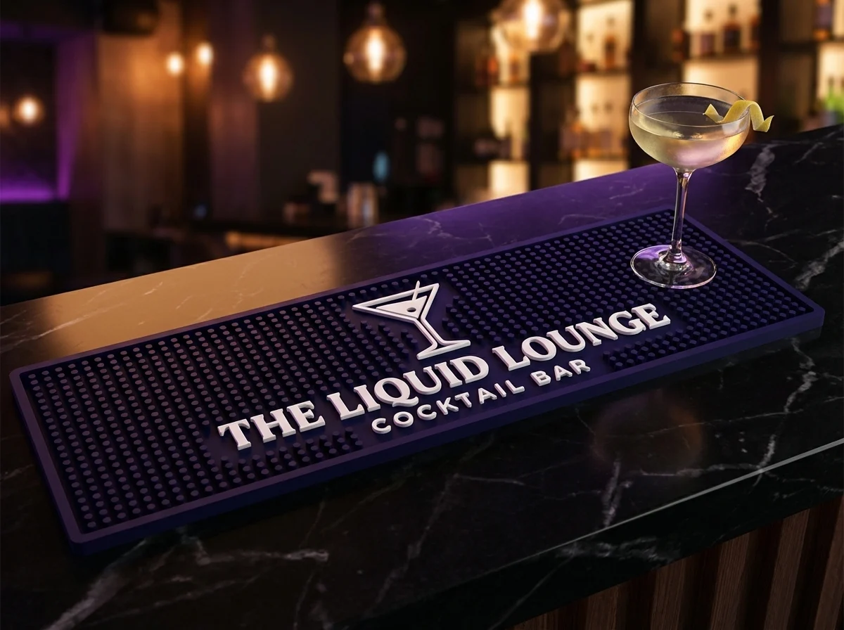Our custom bar mats are built for the busiest venues — catching spills, protecting surfaces, and keeping your brand front and center all night long. Made from premium, food-safe rubber, they’re durable, easy to clean, and designed to look great even after years of heavy use.